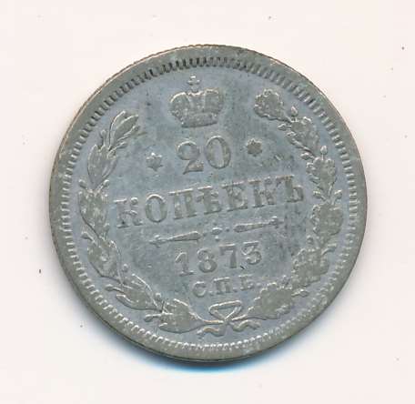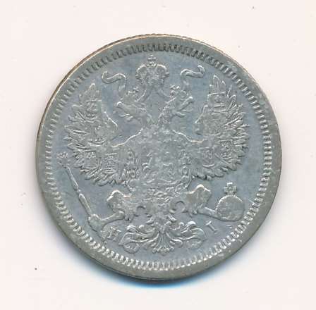 Лицевая сторона — гербовый орел, оборотная —обозначение номинала (20 копеекъ), окруженное венком из лавровой и дубовой ветвей и дата.