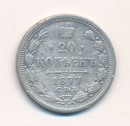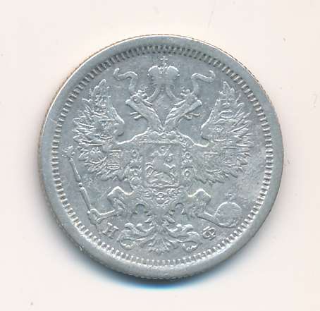 Лицевая сторона — гербовый орел, оборотная —обозначение номинала (20 копеекъ), окруженное венком из лавровой и дубовой ветвей и дата.