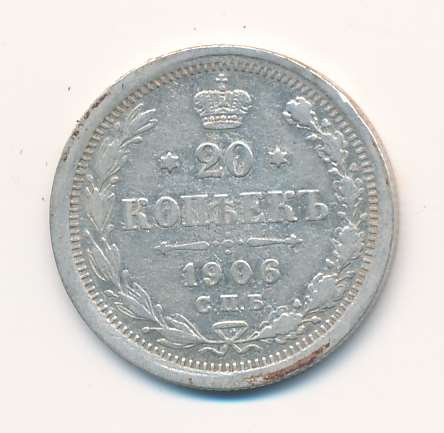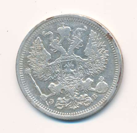 Лицевая сторона — гербовый орел, оборотная —обозначение номинала (20 копеекъ), окруженное венком из лавровой и дубовой ветвей и дата.