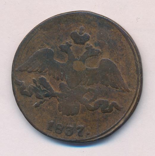 На новой серии медных монет оформление герба как на золотых (с 1817 года) и серебряных (с 1826 года), хотя еще в 1830 году было указано сделать для них орла как на платиновых. Таким образом, вышедшие в 1832 году в обращение новые медные монеты изначально имеют устаревшее оформление, а золотые и серебряные с этого же 1832 года — новое.