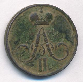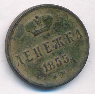 Лицевая сторона — вензель Николая I, оборотная — обозначение номинала (денежка) и дата. Нормативный вес — 2,56 грамма, гурт гладкий.