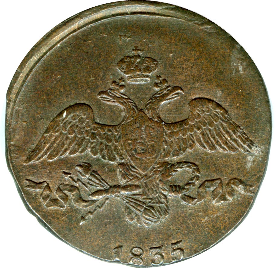 На новой серии медных монет оформление герба как на золотых (с 1817 года) и серебряных (с 1826 года), хотя еще в 1830 году было указано сделать для них орла как на платиновых. Таким образом, вышедшие в 1832 году в обращение новые медные монеты изначально имеют устаревшее оформление, а золотые и серебряные с этого же 1832 года — новое.