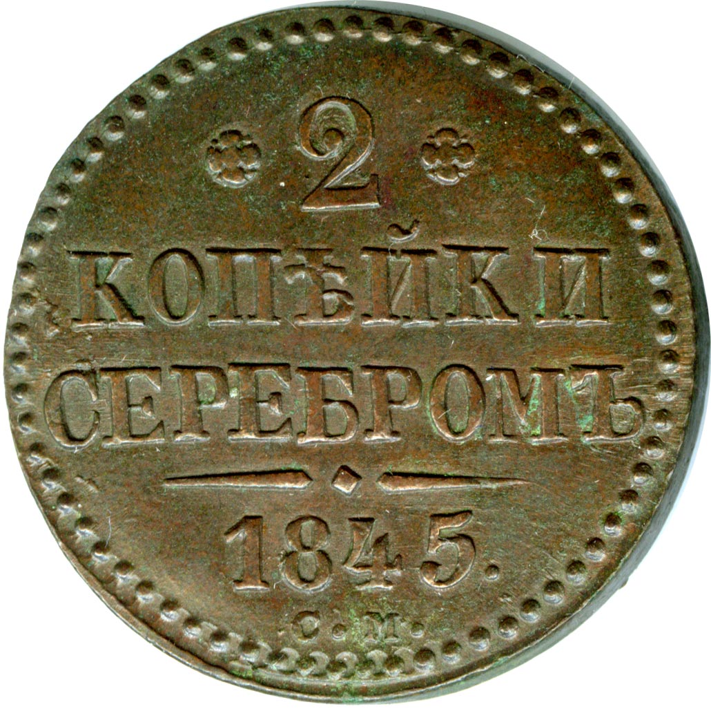 На новых монетах равенство серебряному курсу указано прямо в номинале: «2 КОПЕЙКИ СЕРЕБРОМ». Указ об их выпуске следует 6 сентября 1840 года («О новой медной монете на серебро 16-рублевого в пуде достоинства»). Массовая чеканка началось за год до этого на Екатеринбургском (знак ЕМ) и Сузунском (знак СМ) дворах. В качестве временной меры в 1840-1843 годах к ним подключается Ижорский завод (знак СПМ). С 1844 года после «значительного скопления медной монеты в народном обращении» в Екатеринбурге производство прекращается, а в Сузуне сокращается. Варшавский двор (знак MW), получив разрешение на выпуск общегосударственной монеты, успел отчеканить ее лишь в небольшом количестве в 1848 году.