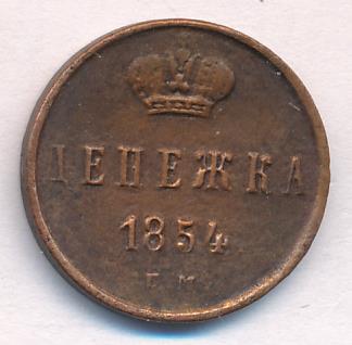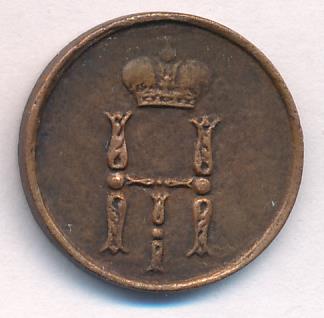 Лицевая сторона — вензель Николая I, оборотная — обозначение номинала (денежка) и дата. Нормативный вес — 2,56 грамма, гурт гладкий.
