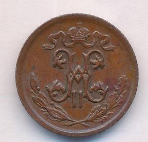 Лицевая сторона — вензель Александра II в венке из лавровой и дубовой ветвей; оборотная — обозначение номинала (1/2 копейки) и дата. Нормативный вес — 1,64 грамма, гурт рубчатый.