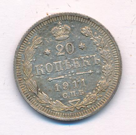 Лицевая сторона — гербовый орел, оборотная —обозначение номинала (20 копеекъ), окруженное венком из лавровой и дубовой ветвей и дата.