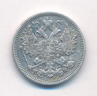 Лицевая сторона — гербовый орел, оборотная —обозначение номинала (15 копеекъ), окруженное венком из лавровой и дубовой ветвей и дата.