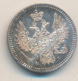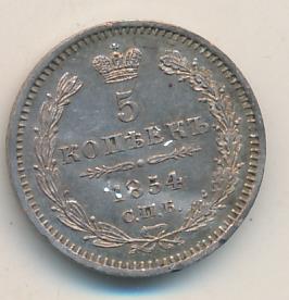 Лицевая сторона — новый гербовый орел с поднятыми крыльями, оборотная —обозначение номинала (5 копеекъ), окруженное венком из лавровой и дубовой ветвей и дата. Проба — 868, нормативный вес — 1,04 грамма.