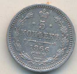 Лицевая сторона — гербовый орел, оборотная —обозначение номинала (5 копеекъ), окруженное венком из лавровой и дубовой ветвей и дата.