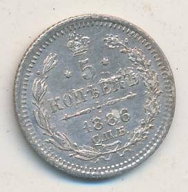 Лицевая сторона — гербовый орел, оборотная —обозначение номинала (5 копеекъ), окруженное венком из лавровой и дубовой ветвей и дата.