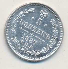 Лицевая сторона — гербовый орел, оборотная —обозначение номинала (5 копеекъ), окруженное венком из лавровой и дубовой ветвей и дата.