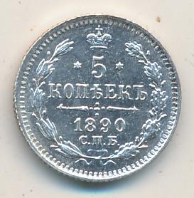 Лицевая сторона — гербовый орел, оборотная —обозначение номинала (5 копеекъ), окруженное венком из лавровой и дубовой ветвей и дата.