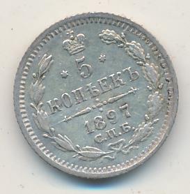 Лицевая сторона — гербовый орел, оборотная —обозначение номинала (5 копеекъ), окруженное венком из лавровой и дубовой ветвей и дата.