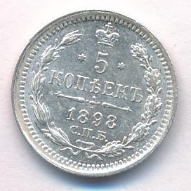 Лицевая сторона — гербовый орел, оборотная —обозначение номинала (5 копеекъ), окруженное венком из лавровой и дубовой ветвей и дата.