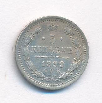 Лицевая сторона — гербовый орел, оборотная —обозначение номинала (5 копеекъ), окруженное венком из лавровой и дубовой ветвей и дата.