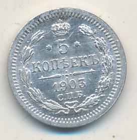 Лицевая сторона — гербовый орел, оборотная —обозначение номинала (5 копеекъ), окруженное венком из лавровой и дубовой ветвей и дата.