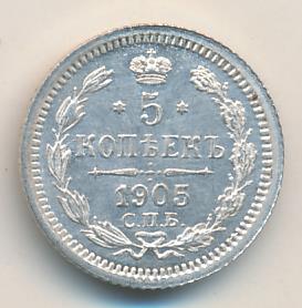 Лицевая сторона — гербовый орел, оборотная —обозначение номинала (5 копеекъ), окруженное венком из лавровой и дубовой ветвей и дата.