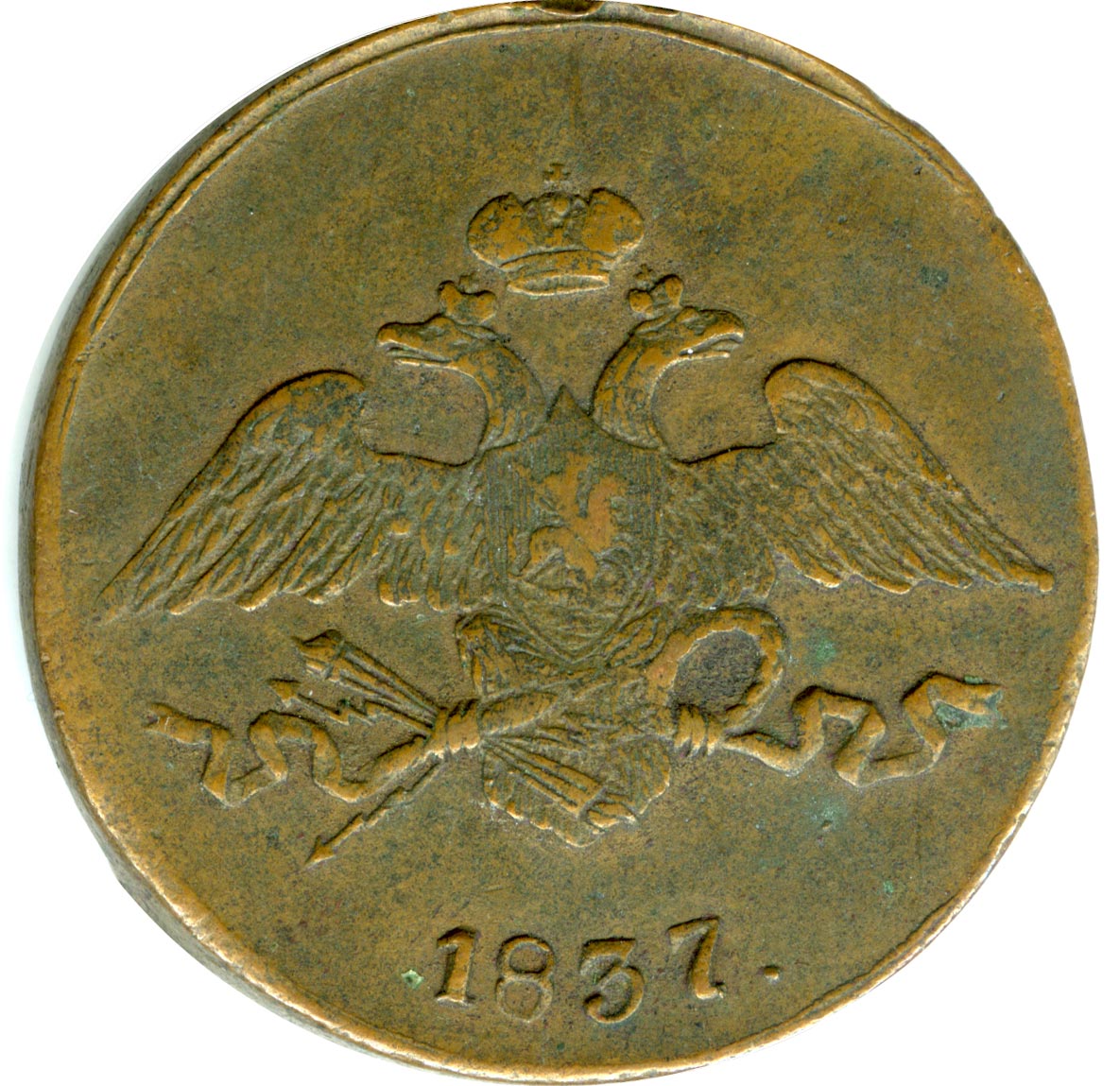 На новой серии медных монет оформление герба как на золотых (с 1817 года) и серебряных (с 1826 года), хотя еще в 1830 году было указано сделать для них орла как на платиновых. Таким образом, вышедшие в 1832 году в обращение новые медные монеты изначально имеют устаревшее оформление, а золотые и серебряные с этого же 1832 года — новое.