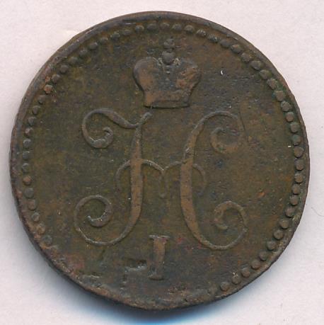 Лицевая сторона — вензель Николая I в бусовом ободке, оборотная — надпись «1 КОПЕЙКА СЕРЕБРОМ» и дата. Нормативный вес — 10,24 грамма, гурт гладкий.