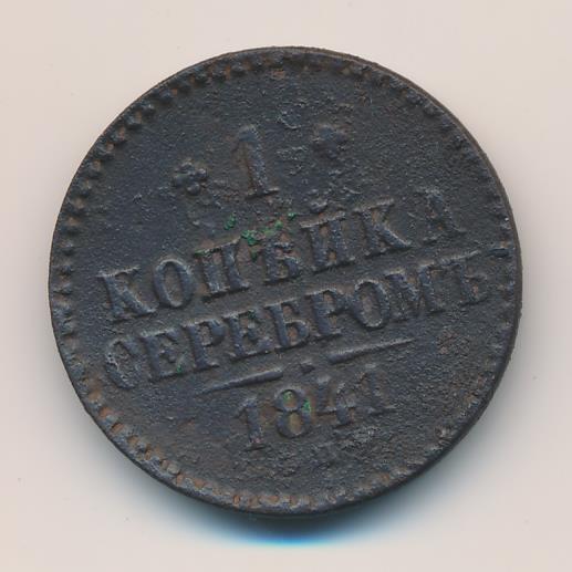 Лицевая сторона — вензель Николая I в бусовом ободке, оборотная — надпись «1 КОПЕЙКА СЕРЕБРОМ» и дата. Нормативный вес — 10,24 грамма, гурт гладкий.