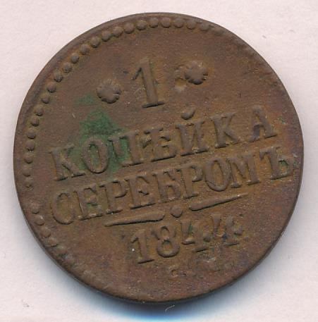 Лицевая сторона — вензель Николая I в бусовом ободке, оборотная — надпись «1 КОПЕЙКА СЕРЕБРОМ» и дата. Нормативный вес — 10,24 грамма, гурт гладкий.