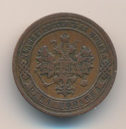 Лицевая сторона — двуглавый орел, надпись МЕДНАЯ РОССIЙСКАЯ МОНЕТА и обозначение номинала (одна копейка); оборотная — обозначение номинала (1 копейка) в бусовом ободке и дата. Нормативный вес — 3,28 грамма, гурт рубчатый.