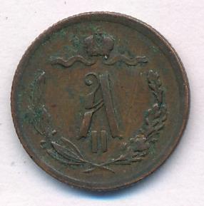 Лицевая сторона — вензель Александра II в венке из лавровой и дубовой ветвей; оборотная — обозначение номинала (1/2 копейки) и дата. Нормативный вес — 1,64 грамма, гурт рубчатый.