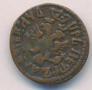 Дата кириллицей. Нормативный вес монет 1700 года — 3, 20 грамма, с 1701 года — 2, 65 грамма, с 1704 года — 2, 13 грамма, а с 1713 года — 2, 05 грамма. Гурт гладкий.