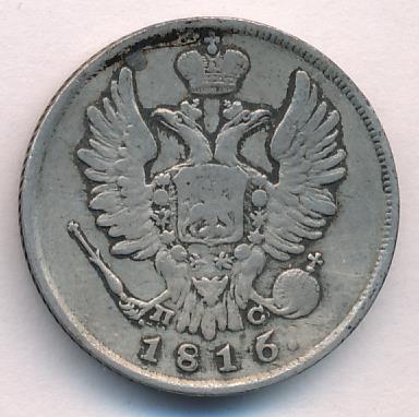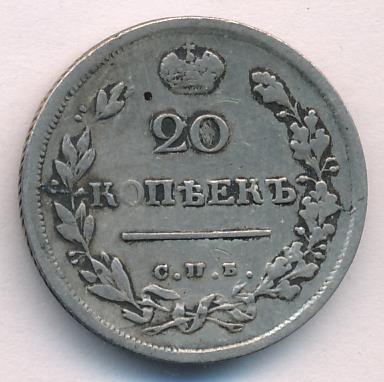 Лицевая сторона - двуглавый орел и дата, оборотная — обозначение номинала (20 копеекъ) в венке из лавровой и дубовой ветвей. Проба до 1813 года — 750, нормативный вес — 4,80 грамма; после 1813 года — проба 868, нормативный вес — 4,15 грамма.