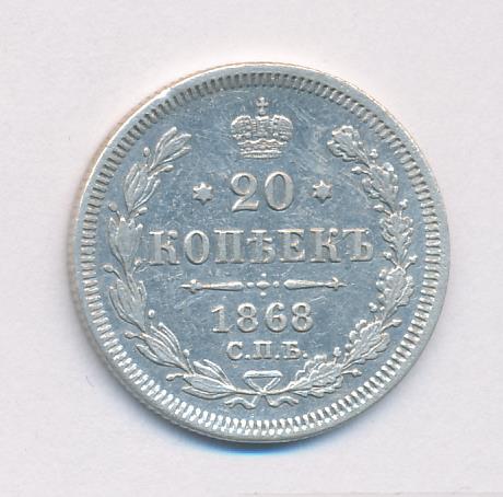 Лицевая сторона — гербовый орел, оборотная —обозначение номинала (20 копеекъ), окруженное венком из лавровой и дубовой ветвей и дата.