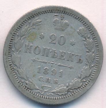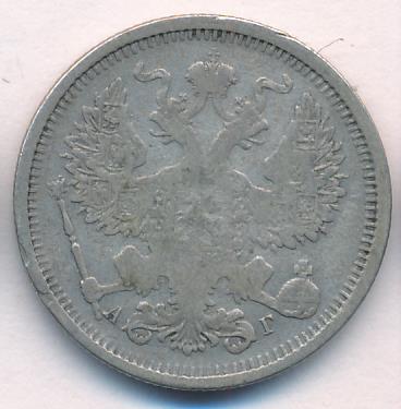 Лицевая сторона — гербовый орел, оборотная —обозначение номинала (20 копеекъ), окруженное венком из лавровой и дубовой ветвей и дата.