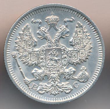 Лицевая сторона — гербовый орел, оборотная —обозначение номинала (20 копеекъ), окруженное венком из лавровой и дубовой ветвей и дата.