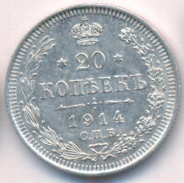 Лицевая сторона — гербовый орел, оборотная —обозначение номинала (20 копеекъ), окруженное венком из лавровой и дубовой ветвей и дата.