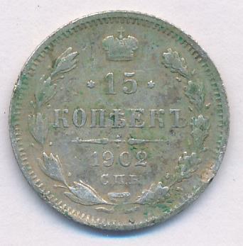 Лицевая сторона — гербовый орел, оборотная —обозначение номинала (15 копеекъ), окруженное венком из лавровой и дубовой ветвей и дата.