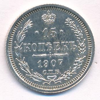 Лицевая сторона — гербовый орел, оборотная —обозначение номинала (15 копеекъ), окруженное венком из лавровой и дубовой ветвей и дата.