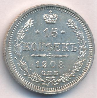 Лицевая сторона — гербовый орел, оборотная —обозначение номинала (15 копеекъ), окруженное венком из лавровой и дубовой ветвей и дата.