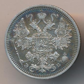 Лицевая сторона — гербовый орел, оборотная —обозначение номинала (15 копеекъ), окруженное венком из лавровой и дубовой ветвей и дата.