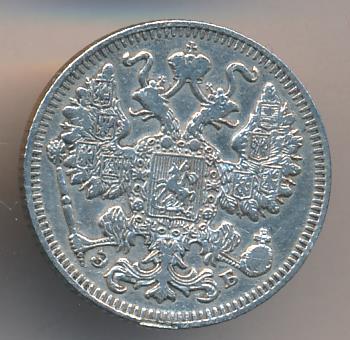 Лицевая сторона — гербовый орел, оборотная —обозначение номинала (15 копеекъ), окруженное венком из лавровой и дубовой ветвей и дата.