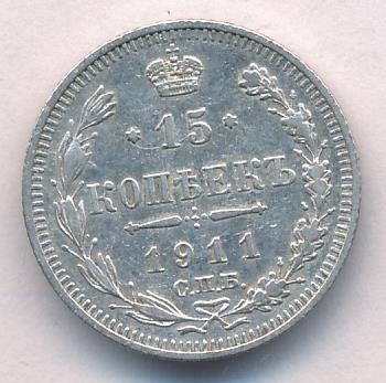 Лицевая сторона — гербовый орел, оборотная —обозначение номинала (15 копеекъ), окруженное венком из лавровой и дубовой ветвей и дата.