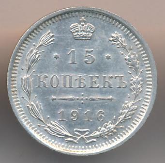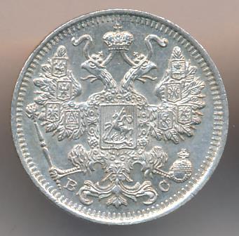 Лицевая сторона — гербовый орел, оборотная —обозначение номинала (15 копеекъ), окруженное венком из лавровой и дубовой ветвей и дата.