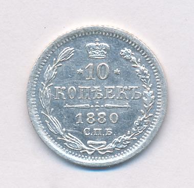 Лицевая сторона — гербовый орел, оборотная —обозначение номинала (10 копеекъ), окруженное венком из лавровой и дубовой ветвей и дата.