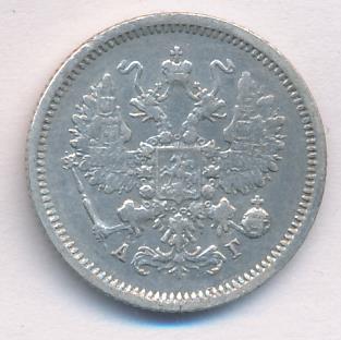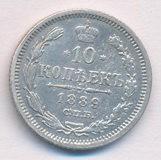 Лицевая сторона — гербовый орел, оборотная —обозначение номинала (10 копеекъ), окруженное венком из лавровой и дубовой ветвей и дата.