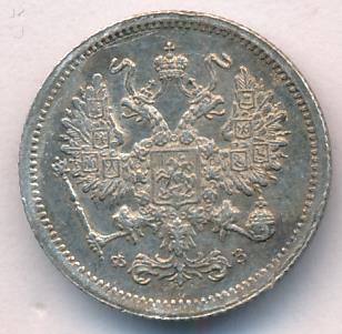 Лицевая сторона — гербовый орел, оборотная —обозначение номинала (10 копеекъ), окруженное венком из лавровой и дубовой ветвей и дата.
