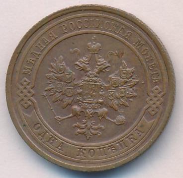 Лицевая сторона — двуглавый орел, надпись МЕДНАЯ РОССIЙСКАЯ МОНЕТА и обозначение номинала (одна копейка); оборотная — обозначение номинала (1 копейка) в бусовом ободке и дата. Нормативный вес — 3,28 грамма, гурт рубчатый.