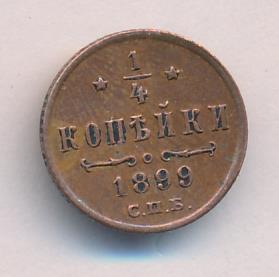 Лицевая сторона — вензель Александра II в венке из лавровой и дубовой ветвей; оборотная — обозначение номинала (1/4 копейки) и дата. Нормативный вес — 0,82 грамма, гурт рубчатый.