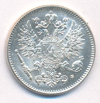 Лицевая сторона — российский двуглавый орел с гербом Великого княжества Финляндского на груди, оборотная — номинал и дата в венке из дубовых листьев. Проба — 750, нормативный вес — 2,55 грамма, гурт рубчатый.
