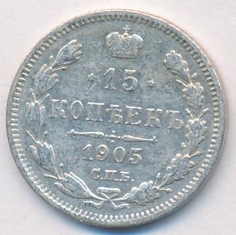 Лицевая сторона — гербовый орел, оборотная —обозначение номинала (15 копеекъ), окруженное венком из лавровой и дубовой ветвей и дата.