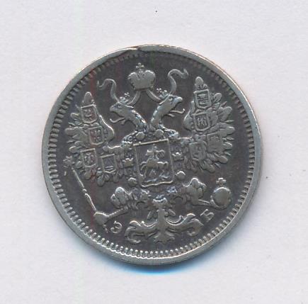 Лицевая сторона — гербовый орел, оборотная —обозначение номинала (15 копеекъ), окруженное венком из лавровой и дубовой ветвей и дата.