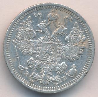 Лицевая сторона — гербовый орел, оборотная —обозначение номинала (15 копеекъ), окруженное венком из лавровой и дубовой ветвей и дата.
