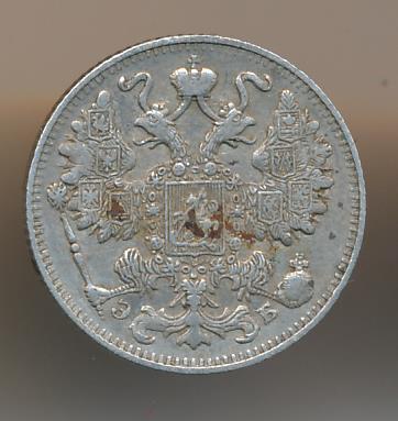 Лицевая сторона — гербовый орел, оборотная —обозначение номинала (15 копеекъ), окруженное венком из лавровой и дубовой ветвей и дата.
